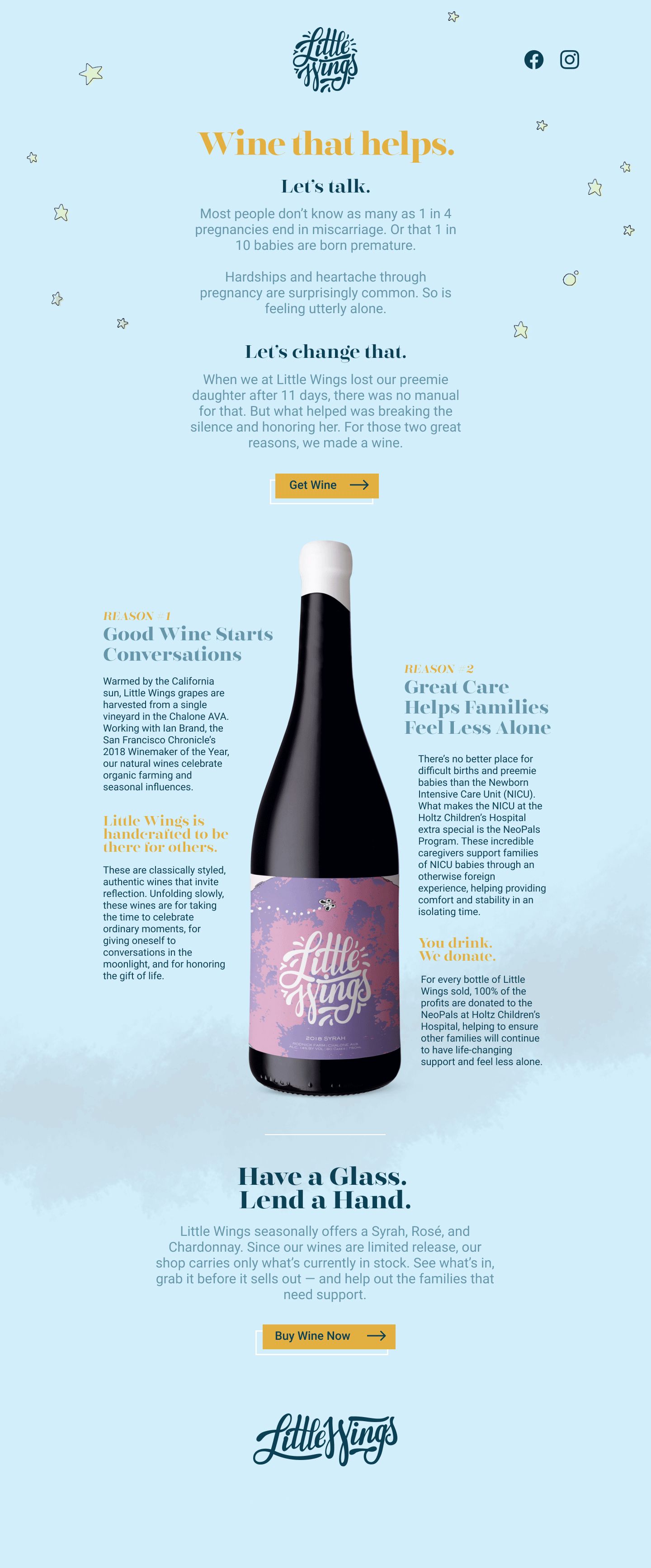 When a wine-making couple lost their child to complications from premature birth, Little Wings was created in honor of their baby and to raise money for the NICU where she was born.